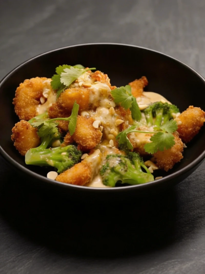 Креветки в темпуре с брокколи